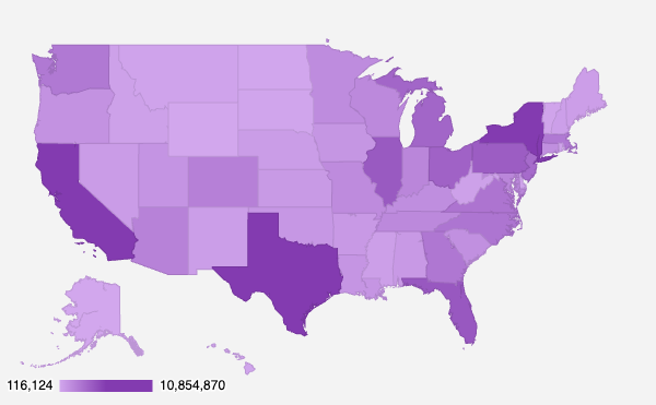 Figure 2: The number of individuals captured as vaccinated in each state to illustrate where HealthVerity Marketplace detects the largest volumes of influenza vaccinations in the 2024-2025 season.